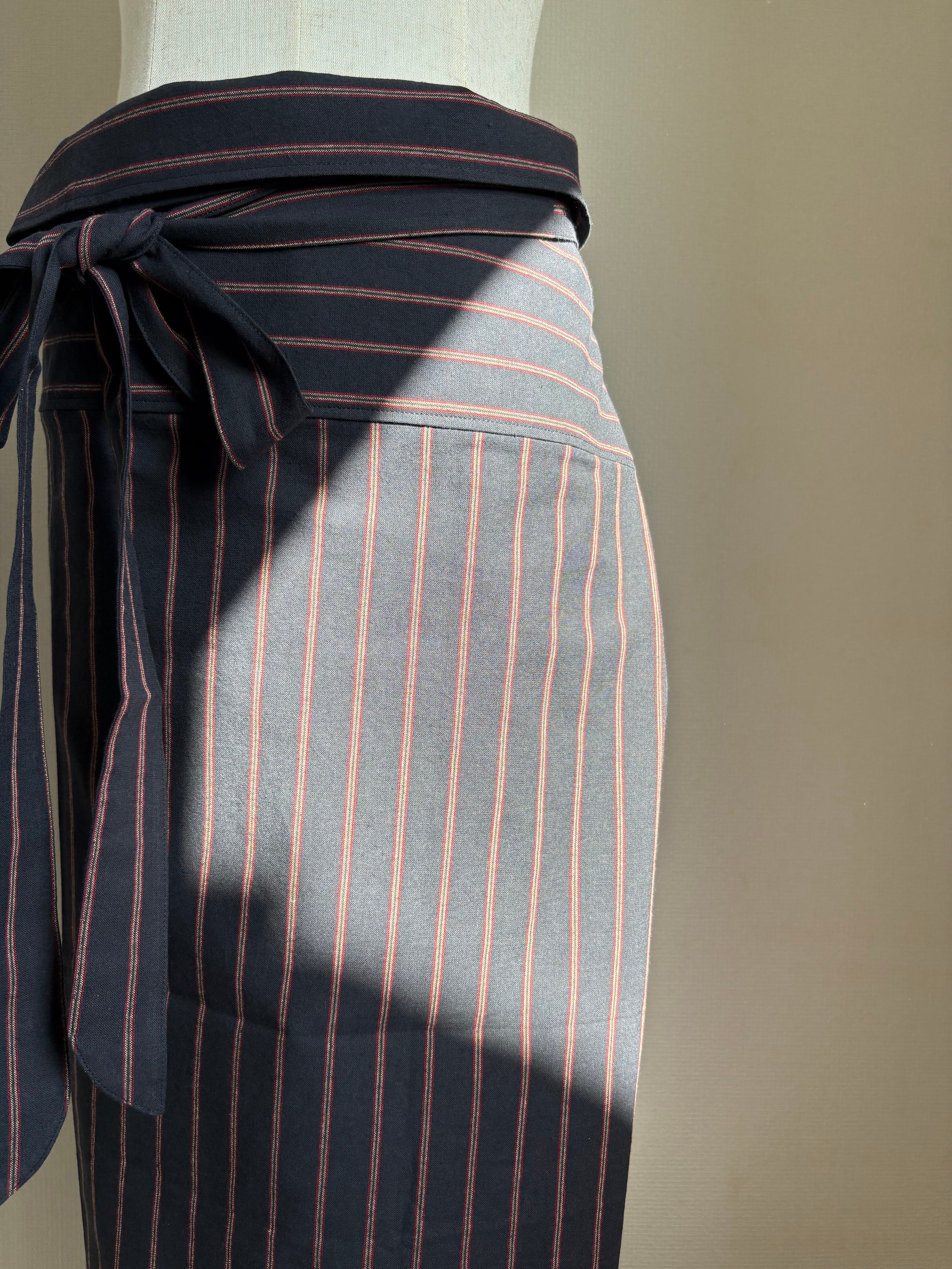 即納!ブラック×レッド細縞 亀田縞 サロンスカート