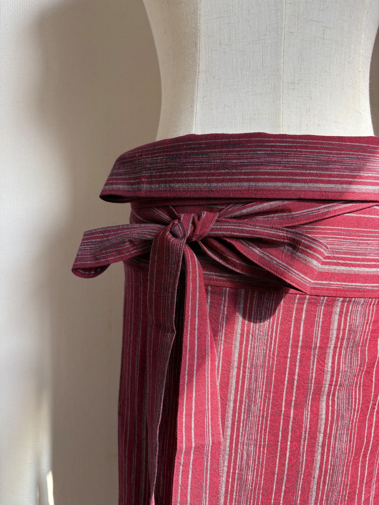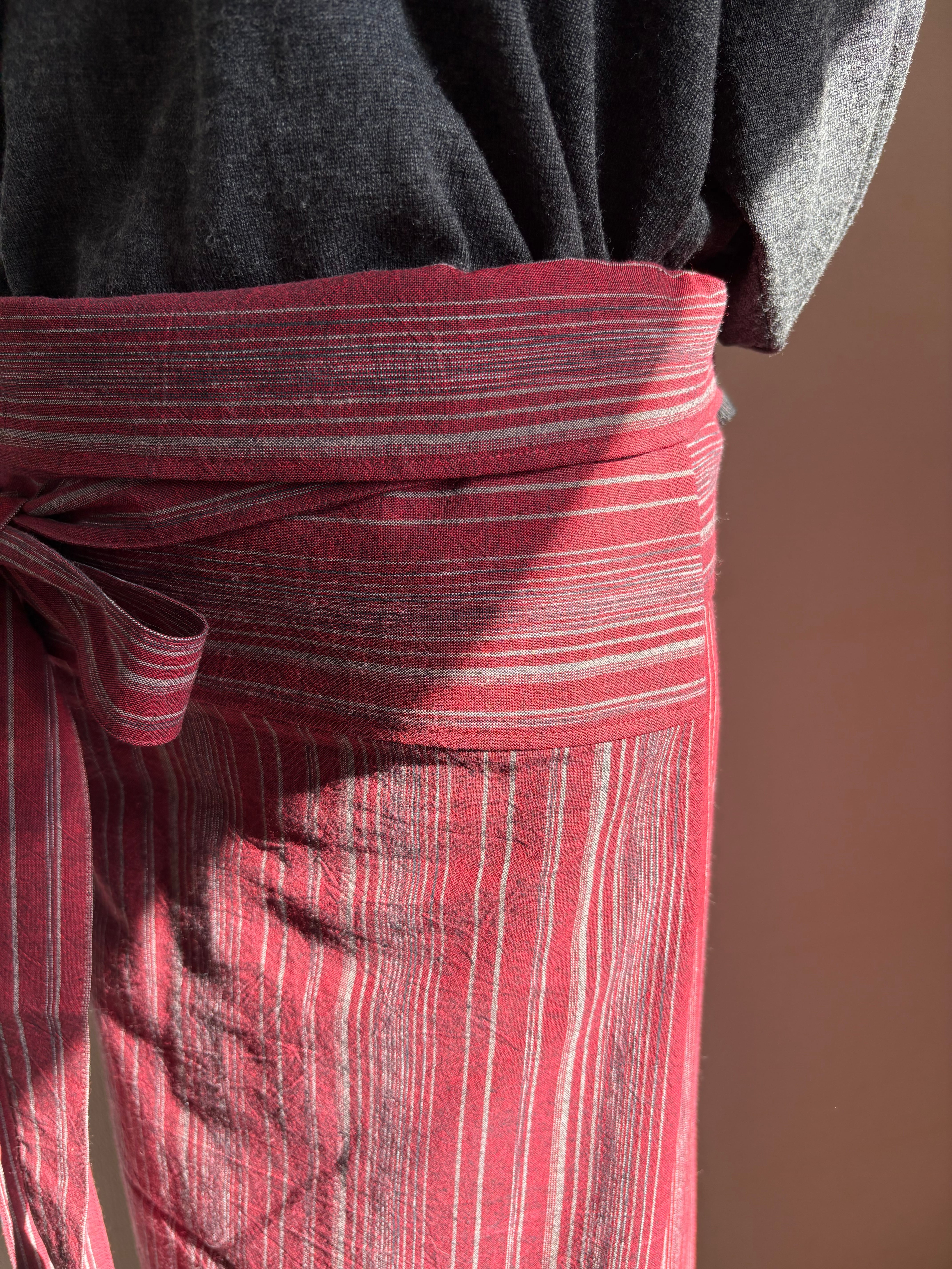 予約販売 レッド×極細縞 亀田縞 サロンスカート